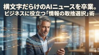 AIニュースが難しくて読めないとお悩みの40代〜60代の社会人必見!専門用語だらけのニュースを卒業し、ビジネスに役立つ「情報の取捨選択」術を解説します。完璧主義を捨て、自分に必要な情報だけを効率的にキャッチアップする実践的なステップを紹介。